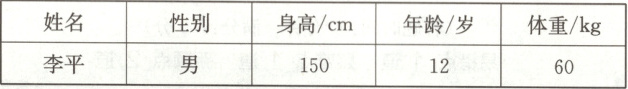 (2)下表是不同体重状况的参考标准,请你帮李平同学算出他