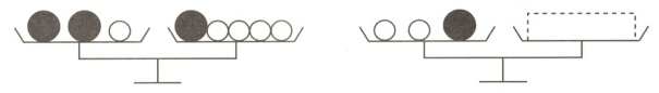 18. 如图,根据左边的天平想一想,要使右边的天平平衡,在框里只放白球,要放(