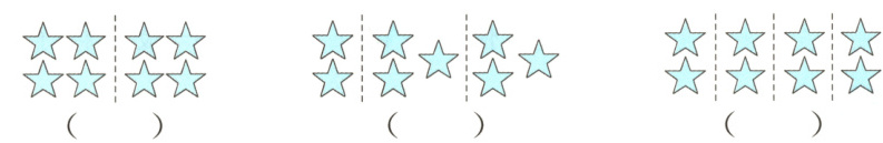 1. 把8颗小星星平均分给4个小朋友,下面哪种分法是正确的?请在正确分法下面的括号里画“√”。