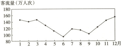 9. 中国高铁飞速发展,营业里程已突破4万公里。某市一高铁站1~12月份的客流量走势如图所示。