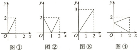 4. 已知集合$ M = \{ x|0 \leq x \leq 2 \} $,$ N = \{ y|0 \leq y \leq 2 \} $,那么下面的4个图形中,能表示从集合$ M $到集合$ N $的函数图象的个数为(