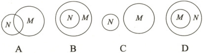 3. 下列表示集合$ M = \{ -1, 0, 1 \} $和$ N = \{ x | x^2 - x = 0 \} $的关系的 Venn 图正确的是(