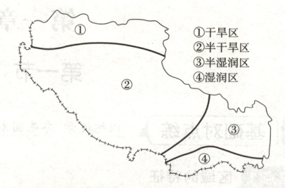 (注:图中标注了四个区域,分别是①干旱区、②半干旱区、③半湿润区、④湿润区)