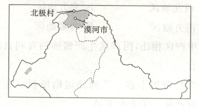 (课本素材挖掘)漠河有我国的北极村。漠河森林密布,长期作为我国重要的伐林基地,如今林场采伐工人转变成了种树人。芬兰也有北极村(66.3°N,25.5°E)。下图为我国漠河市区域图。据此并结合教材P6~7“活动”,完成8~9题。