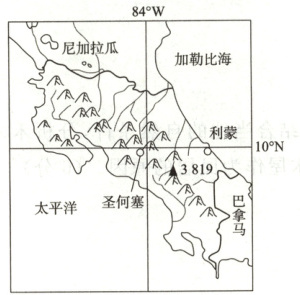 材料二 哥斯达黎加的地理位置示意图。
