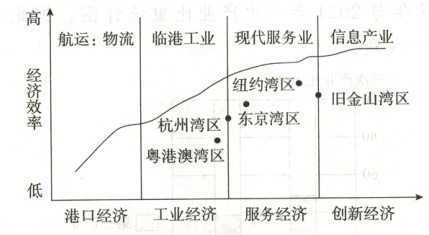 (2025·长春高二联考)湾区经济是一种滨海经济形态,已成为当今国际经济亮点,是滨海城市发展水平的显著标志。读湾区经济发展阶段图,完成1~2题。