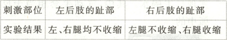 实验一:用体积分数为 1%的硫酸溶液刺激左侧后肢趾部皮肤,蛙左侧后肢出现屈腿反射。