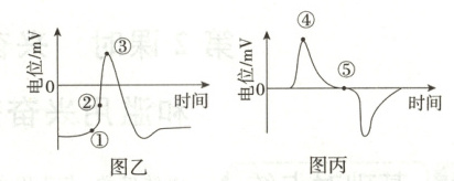 C.图丙曲线处于④点时,图甲a处正处于动作电位状态