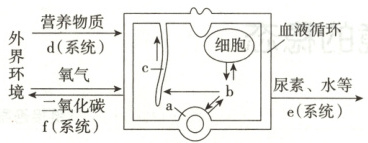 D.a中的CO₂经f系统排出体外至少需要穿过4层磷脂双分子层
