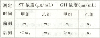 ,然后测定和记录每只家兔血液中的 GH 浓度,并求各组的平均值。②与后测比,进一步实验处理后甲组 GH 浓度