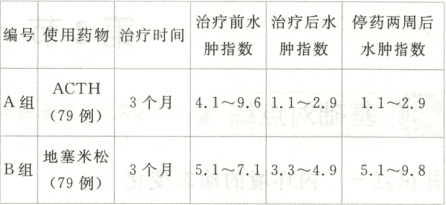 10. 有研究发现促肾上腺皮质激素(ACTH)也能用于治疗脑水肿。为了研究ACTH的治疗效果,研究者通过与现有常用治疗脑水肿药物地塞米松进行临床试验,得到如表所示的实验结果。下列有关解释不恰当的是(