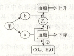4. 如图是血糖平衡调节过程的示意图,其中甲、乙代表器官,a、b代表相应激素。下列有关叙述正确的是(