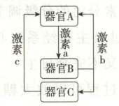 B.器官B分泌的激素b浓度高时,对器官A和C均有抑制作用