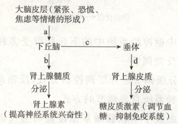 6. 人的情绪变化对神经系统、内分泌系统、免疫系统等都会造成影响,例如当处于危险环境,人会产生紧张、恐慌、焦虑等情绪,在对应情绪影响下,人的反应速度会加快以应对危险环境,但如果长期处于紧张、恐慌、焦虑状态,人的免疫力会下降,其调节过程如图所示,下列叙述错误的是(