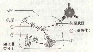 9. 抗原呈递细胞(APC)是指能够摄取、加工处理抗原,并且可以将抗原信息暴露在细胞表面,以便呈递给其他免疫细胞的一类免疫细胞。下图表示某APC摄取、加工处理和呈递抗原的过程,其中MHCⅡ类分子是呈递抗原的蛋白质分子。下列叙述正确的是(