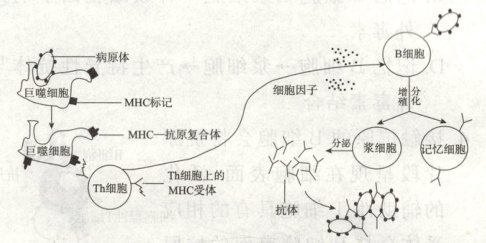 作为抗原的载体(或与抗原结合形成MHC—抗原复合体);将抗原呈递给T细胞
