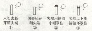 )A.①~④组实验中,胚芽鞘向光弯曲生长的是①和④