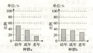 8. 已知种群 a、b 为同种类型动物的种群,但生活在不同的区域。某时期统计两个种群中不同年龄段的个体所占的比例,结果如图所示。下列推测正确的是(