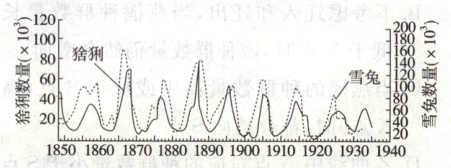 4. 下图为某一调查期间雪兔和猞猁的种群数量波动情况,下列叙述与事实相符的是(