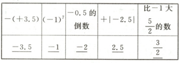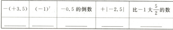 $-(+3.5)$ $(-1)^7$ $-0.5$的倒数 $+|-2.5|$ 比$-1$大$\frac{5}{2}$的数