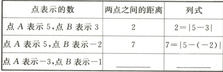 (2) 观察 (1) 中的表格,点 $A$ 表示数 $a$,点 $B$ 表示数 $b$,则 $A$,$B$ 两点之间的距离为