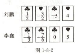 9. 刘鹏与李鑫做抽卡片(只有红桃和梅花两种)游戏,游戏规则:(1)每人抽取 4 张卡片,如果抽到红桃卡片,就加上卡片上的数;如果抽到梅花卡片,就减去卡片上的数;(2)比较两人所抽卡片上的数的计算结果,结果大者获胜.如图 1-8-2 是刘鹏和李鑫抽取的卡片,则谁将获胜?