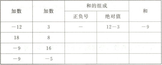 | 加数 | 加数 | 正负号 | 绝对值 | 和 |