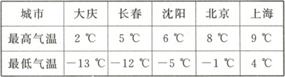 变式 某日,大庆、长春、沈阳、北京、上海五个城市的最高气温与最低气温记录如下表。