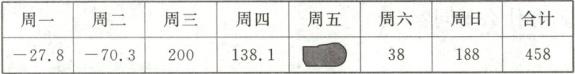 (1)表中周五的盈亏数被墨水涂污了,请你算出周五的盈亏数;