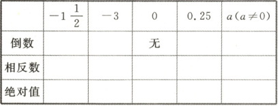 $\hline$相反数$&1\frac{1}{2}&3&0&-0.25&-a\\$