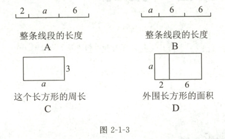 变式 2 如图 2-1-4,在一个长为 $ a (a > 2) $、宽为 2 的长方形中截去一个边长为 2 的正方形,求剩余部分的面积。