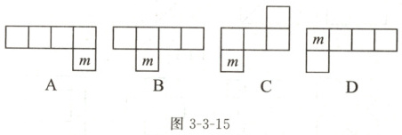 11. 如图 3 - 3 - 14 是一个无盖正方体盒子,盒底标有一个字母 $m$,现沿箭头所指方向将盒子剪开,则展开后的图形是(