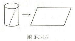 12. 一个半径为 $3 cm$,高为 $5 cm$ 的圆柱,将它的侧面沿虚线剪开(如图 3 - 3 - 16),剪开后得到一个平行四边形,这个平行四边形的面积是