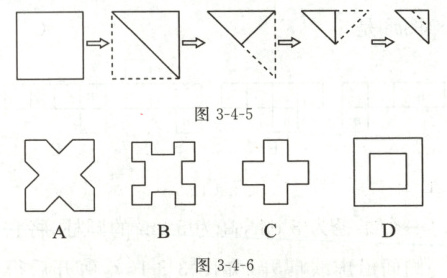 8. 将一正方形纸片按图 3 - 4 - 5 的顺序折叠,然后将最后折叠的纸片沿虚线剪去右上方的小三角形。将纸片展开,得到的图形是(