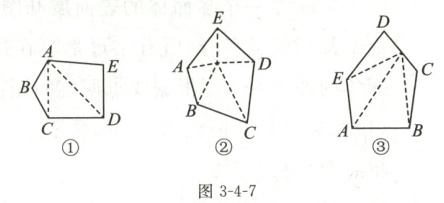 9. 如图 3 - 4 - 7,用三种方法分割五边形。