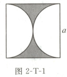 ;6. 如图 2 - T - 1 所示,边长为$a$的正方形中有两个半圆(空白部分),则阴影部分的面积为(