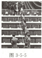 6. 在开会前,工作人员进行会场布置,如图 3 - 5 - 5 所示为两名工作人员拉着一条绳子,然后依“准绳”摆放整齐的茶杯,这样做的理由是