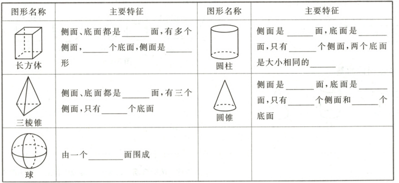 4. 图 3 - 1 - 1 中的①⑤与②③④存在一定的差异,围成①⑤的每一个面都是平的,像这样的立体图形,又称为