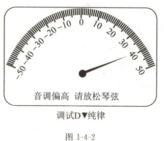 6. 古筝是中国独特的民族乐器之一,为了保持音准,弹奏者常使用调音器对每根琴弦进行调音. 如图 1 - 4 - 2 所示是某古筝调音器软件的界面,指针指向$40$表示音调偏高,需放松琴弦. 下列指针指向的数中表示需拧紧琴弦,且最接近标准音(指针指在$0$处为标准音)的是(