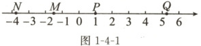 5. 已知点$M$,$N$,$P$,$Q$在数轴上的位置如图 1 - 4 - 1 所示,则其中表示的数的绝对值最大的点是(