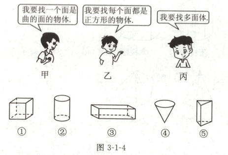 例 3 如图 3 - 1 - 4,请你帮助甲、乙、丙三名同学实现心愿.(用线将符合他们心愿的图形与他们的头像连起来)