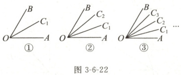 16. 如图 3 - 6 - 22,$\angle AOB = 60^{\circ}$,图①中$\angle AOC_1=\angle C_1OB$,图②中$\angle AOC_1=\angle C_1OC_2=\angle C_2OB$,图③中$\angle AOC_1=\angle C_1OC_2=\angle C_2OC_3=\angle C_3OB$……按此规律排列下去,前 4 个图形中的$\angle AOC_1$之和为(