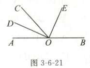15. 如图 3 - 6 - 21,$O$为直线$AB$上的一点,$\angle AOC = 48^{\circ}$,$OD$平分$\angle AOC$,$\angle DOE = 90^{\circ}$。