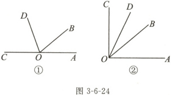 (1)如图 3 - 6 - 24①,当 $\angle AOB$ 与 $\angle BOC$ 互补时,求 $\angle COD$ 的度数;