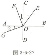 10. 已知:如图 3 - 6 - 27,直线 $AB$,$CD$ 相交于点 $O$,$\angle AOD=\angle BOC = 90^{\circ}$,$\angle 1=\angle 2$,$OE$ 平分 $\angle BOF$,$\angle EOB = 55^{\circ}$,求 $\angle DOG$ 的度数.