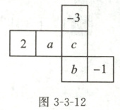 4. 如图 3-3-12 是一个正方体纸盒的表面展开图,纸盒中相对两个面上的数互为相反数。求 $ a $,$ b $,$ c $ 的值。
