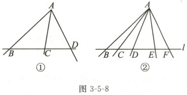 (1)在图 3 - 5 - 8①中,能用字母表示的直线、射线和线段各有哪几条?