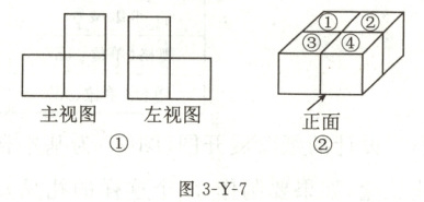 8. (2024 宁夏)如图 3-Y-7,用 5 个大小相同的小正方体搭一个几何体,其主视图、左视图如图①,现将其中 4 个小正方体按图②所示方式摆放,则最后一个小正方体应放在(