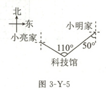 5. (2024 宁夏)小明与小亮要到科技馆参观. 小明家、小亮家和科技馆的方位如图 3-Y-5 所示,则科技馆位于小亮家的(