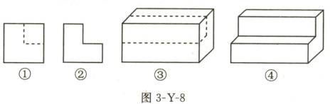 9. (2024 青岛)如图 3-Y-8①,将边长为 2 的正方形纸板沿虚线剪掉边长为 1 的小正方形,得到如图②的“纸板卡”,若用这样完全相同的“纸板卡”拼成正方形,最少需要